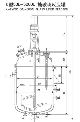 4、K型50L-5000L搪玻璃反應罐結構圖